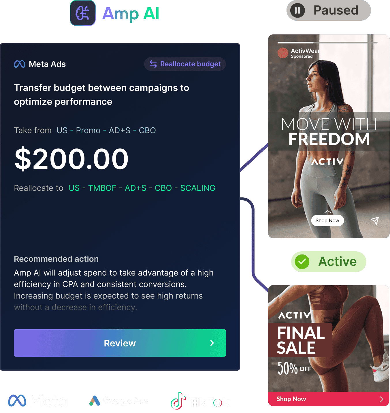 Wave goodbye to wasting hours on manual ad reports. Amp AI uncovers what's driving performance and automatically shifts spend to maximise results—faster than you can say BFCM.